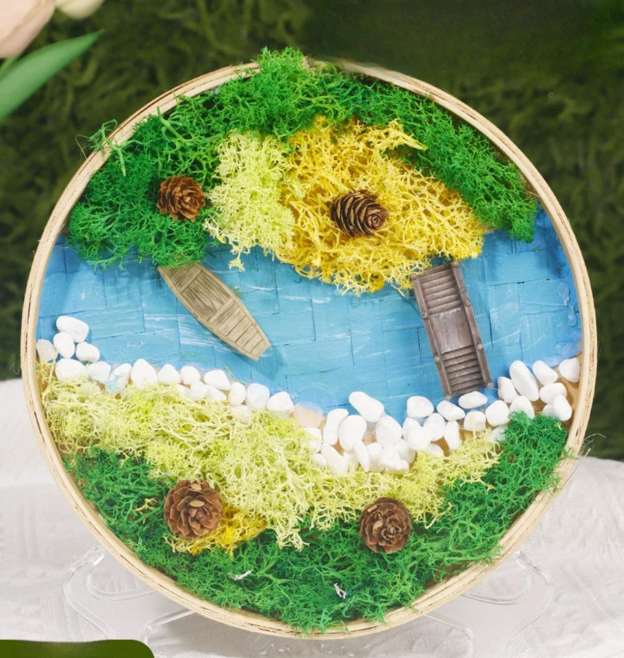 一起动手吧——“碧水行舟”苔藓画